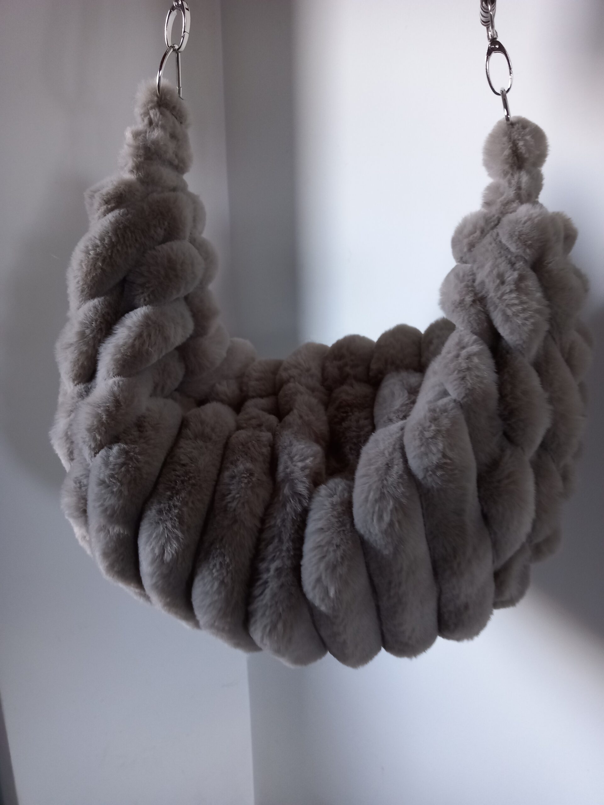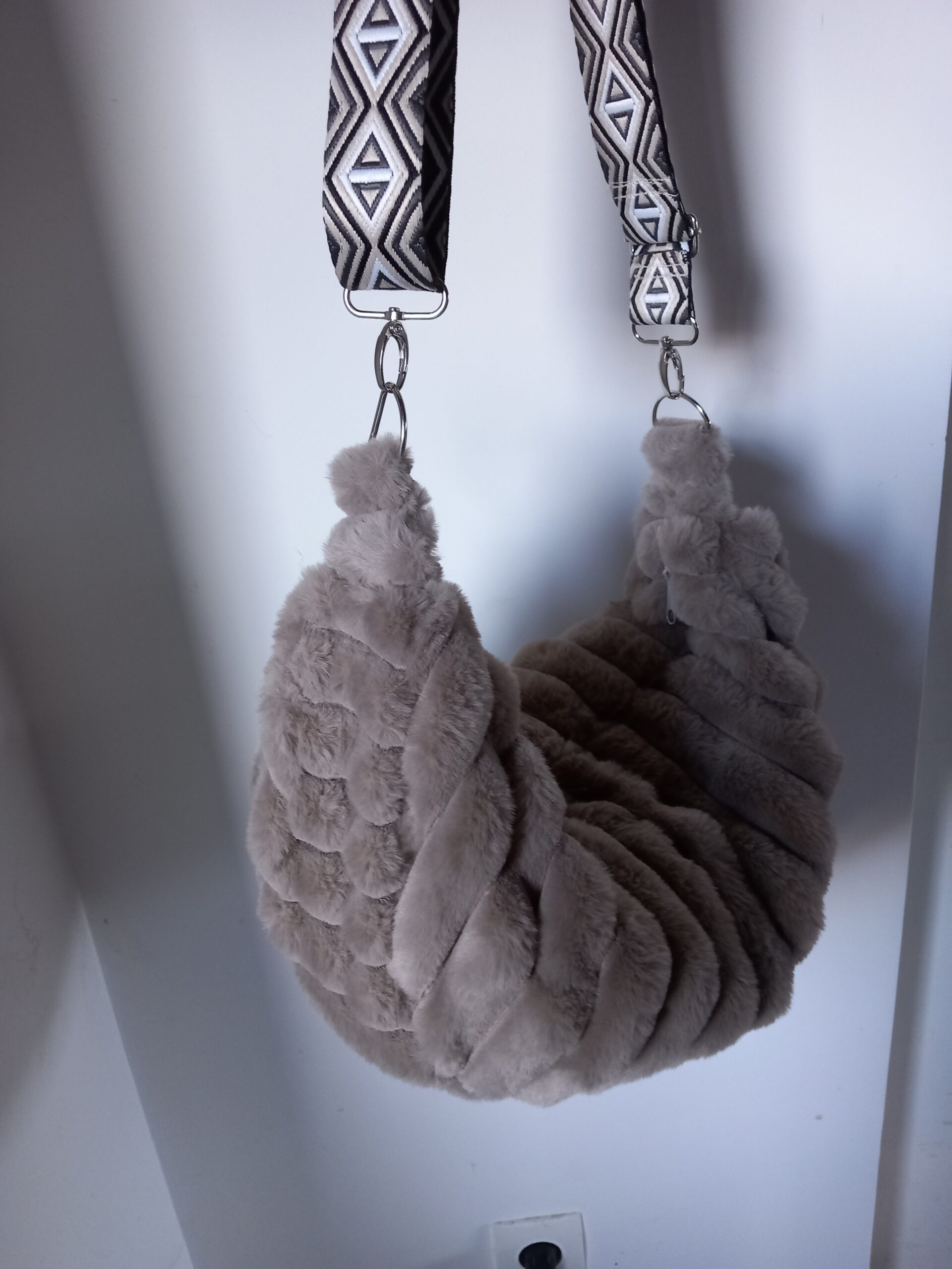 Grand sac à bandoulière 1/2 lune en fausse fourrure ( Fait Main )