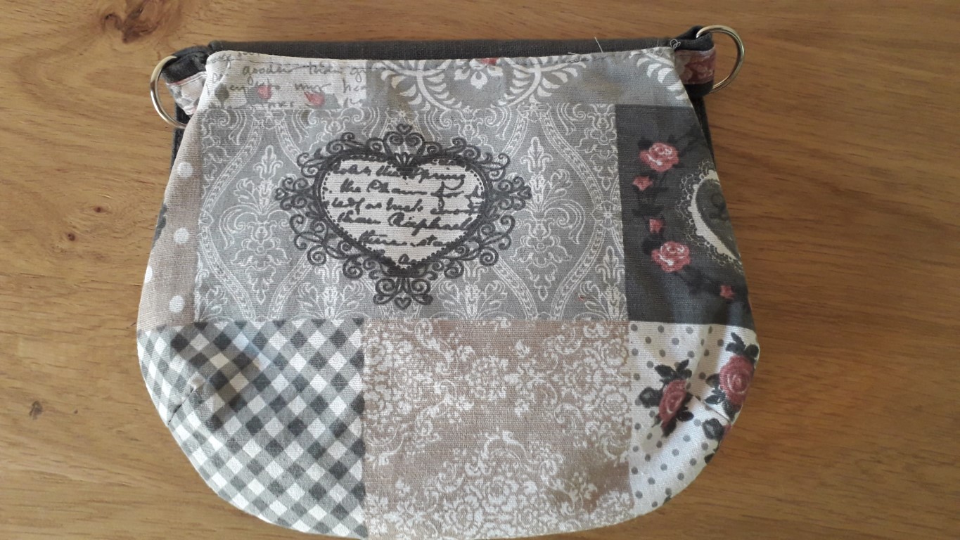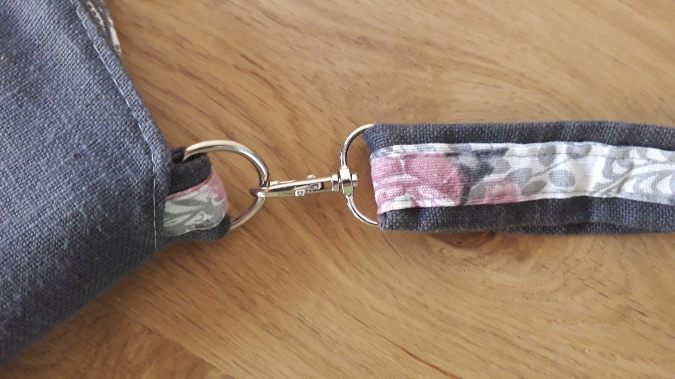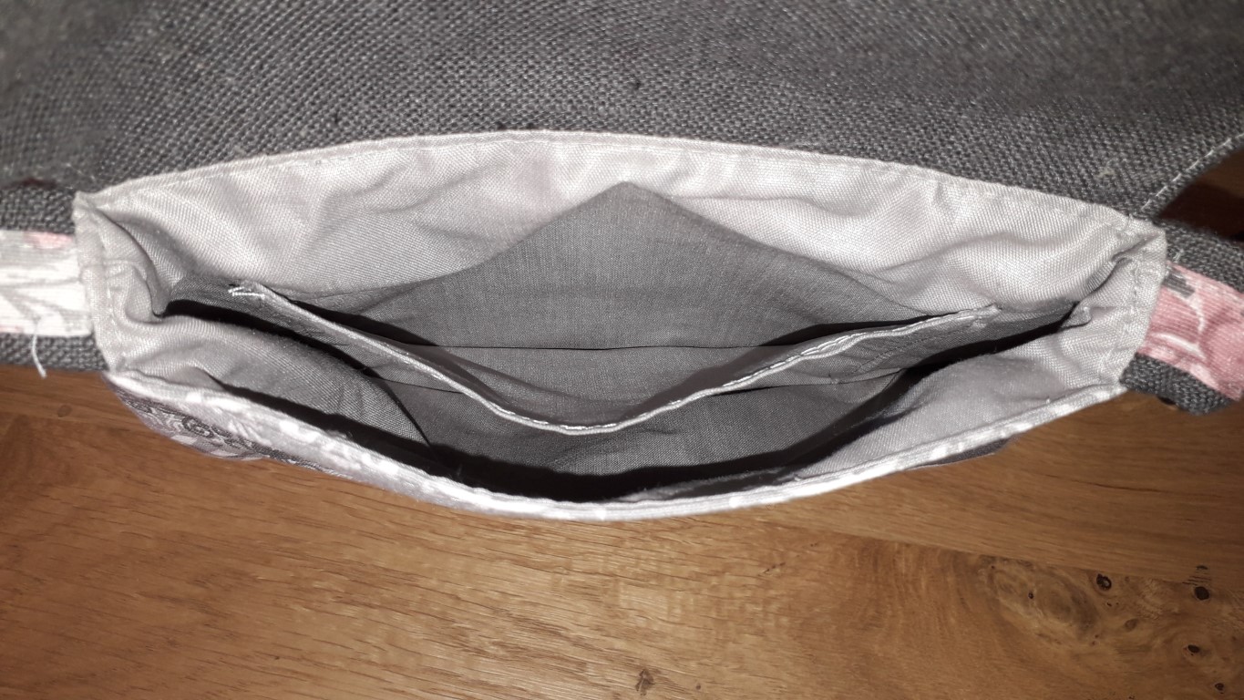 foncé/une toile à motif fleur et cœur rose et gris. Entièrement doublé.