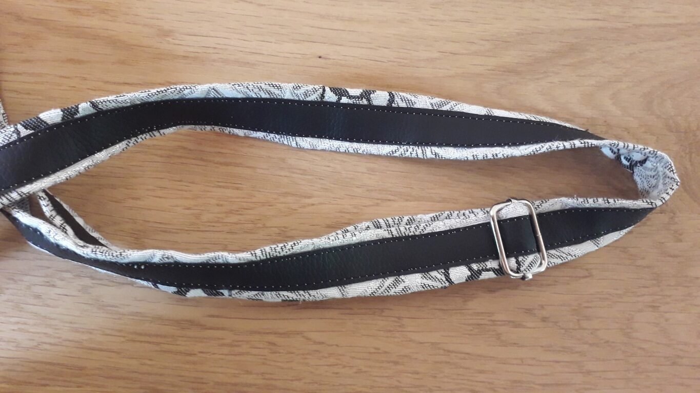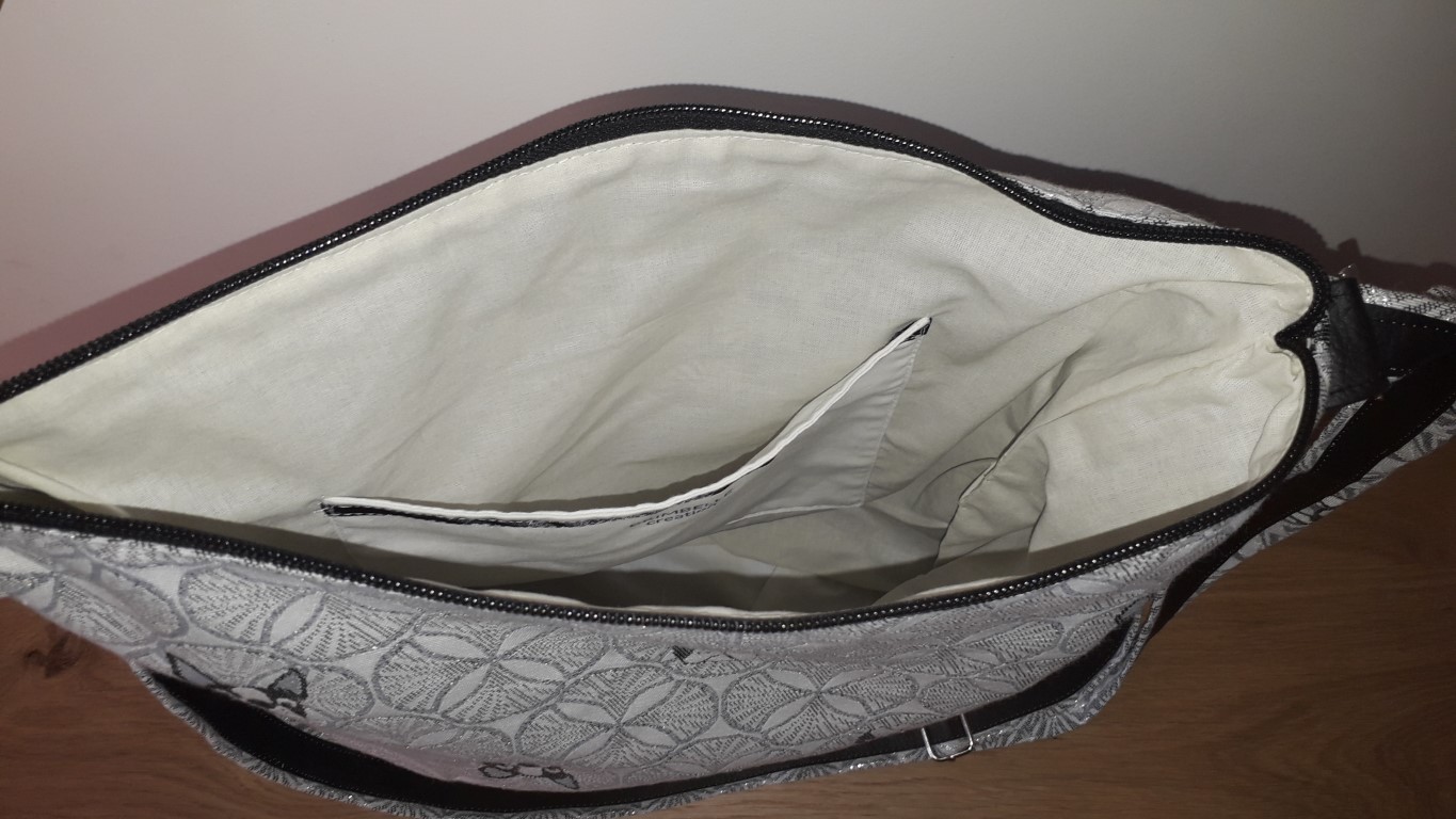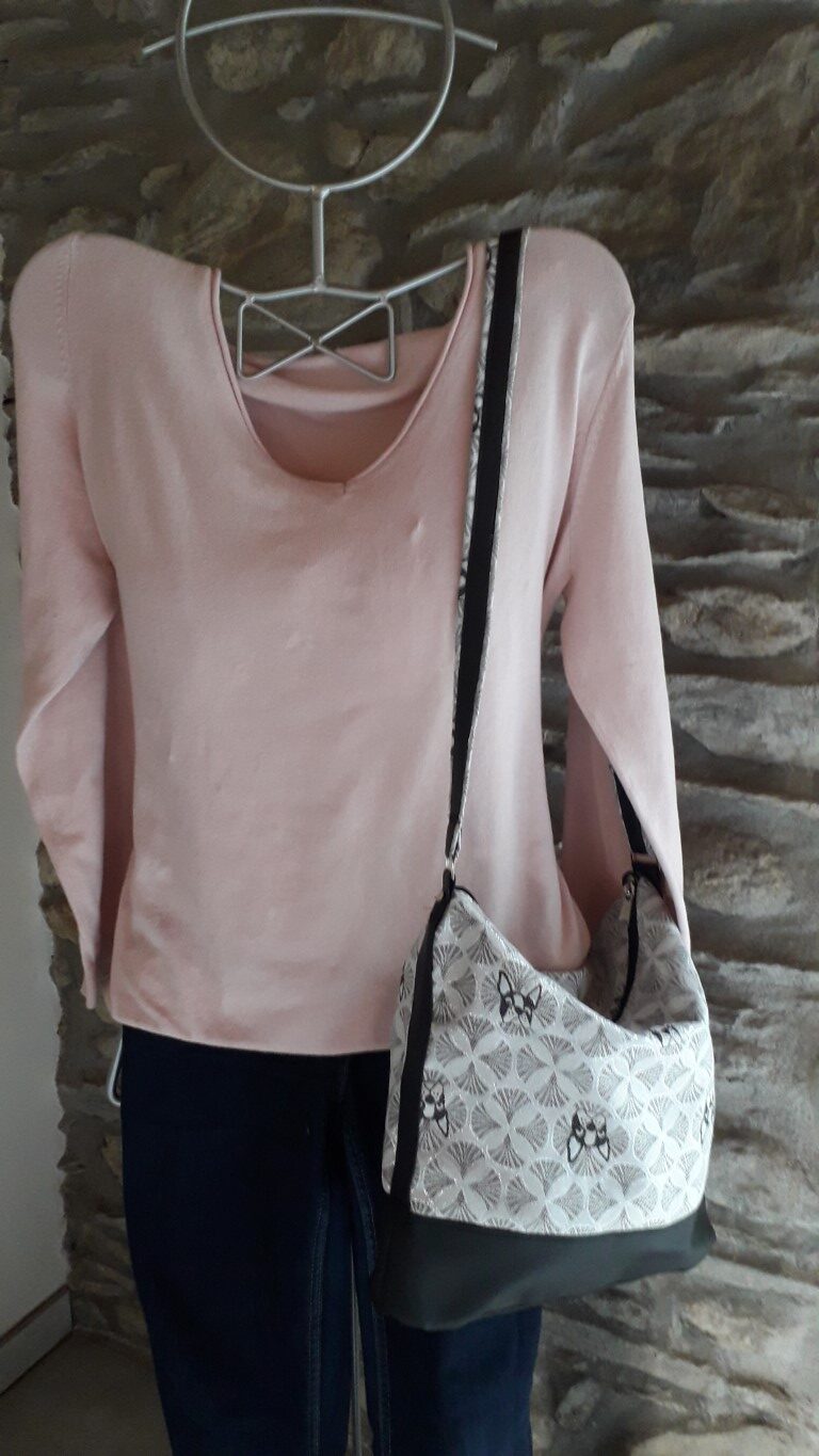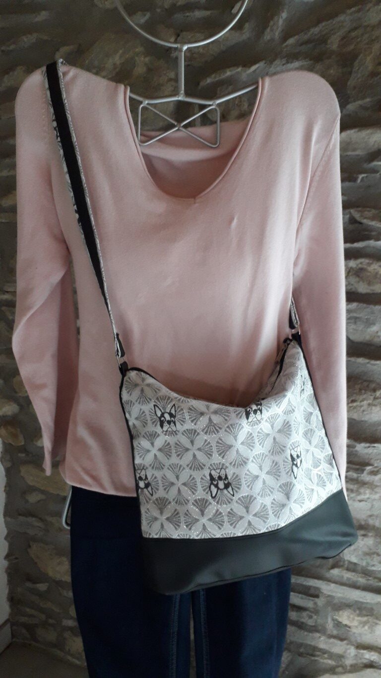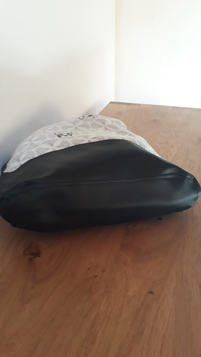 Sac besace doublé, bi-matière simili cuir noir/toile pailletée