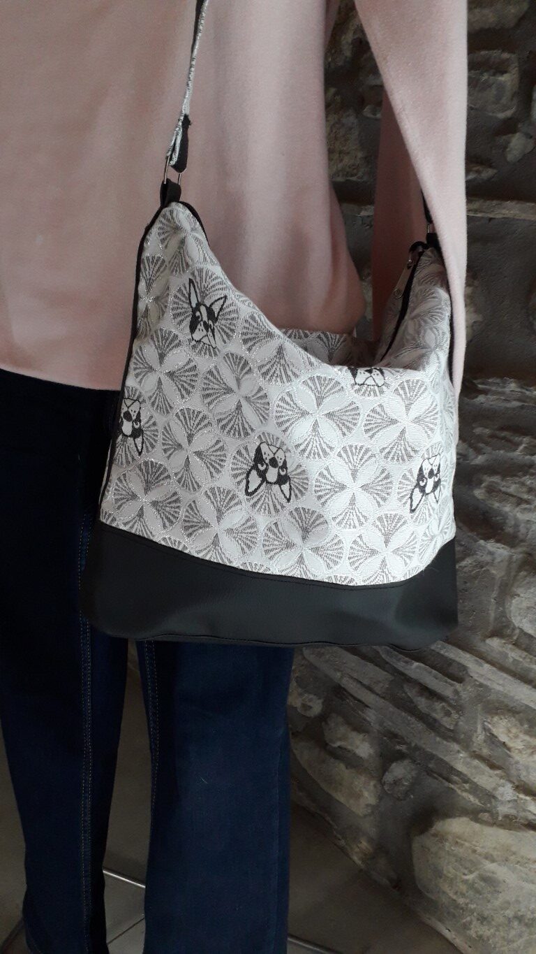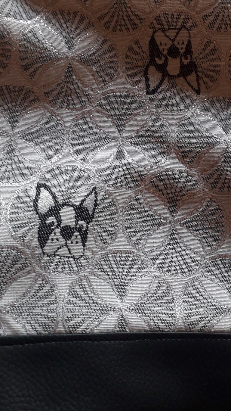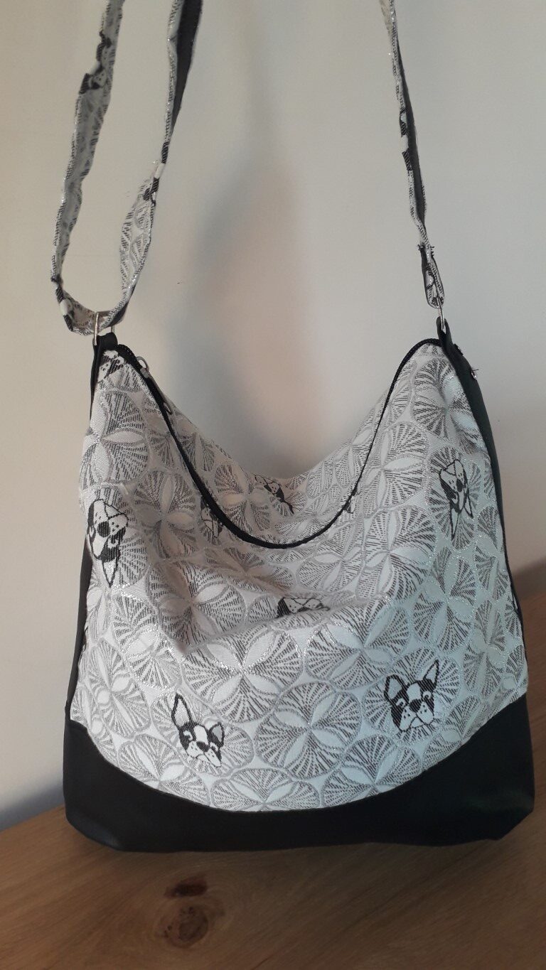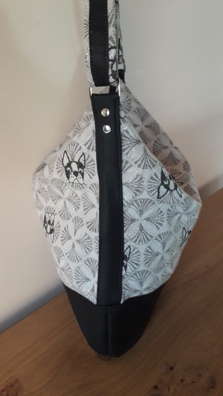 motif tête de chien. Fond du sac renforcé. Une poche intérieure.