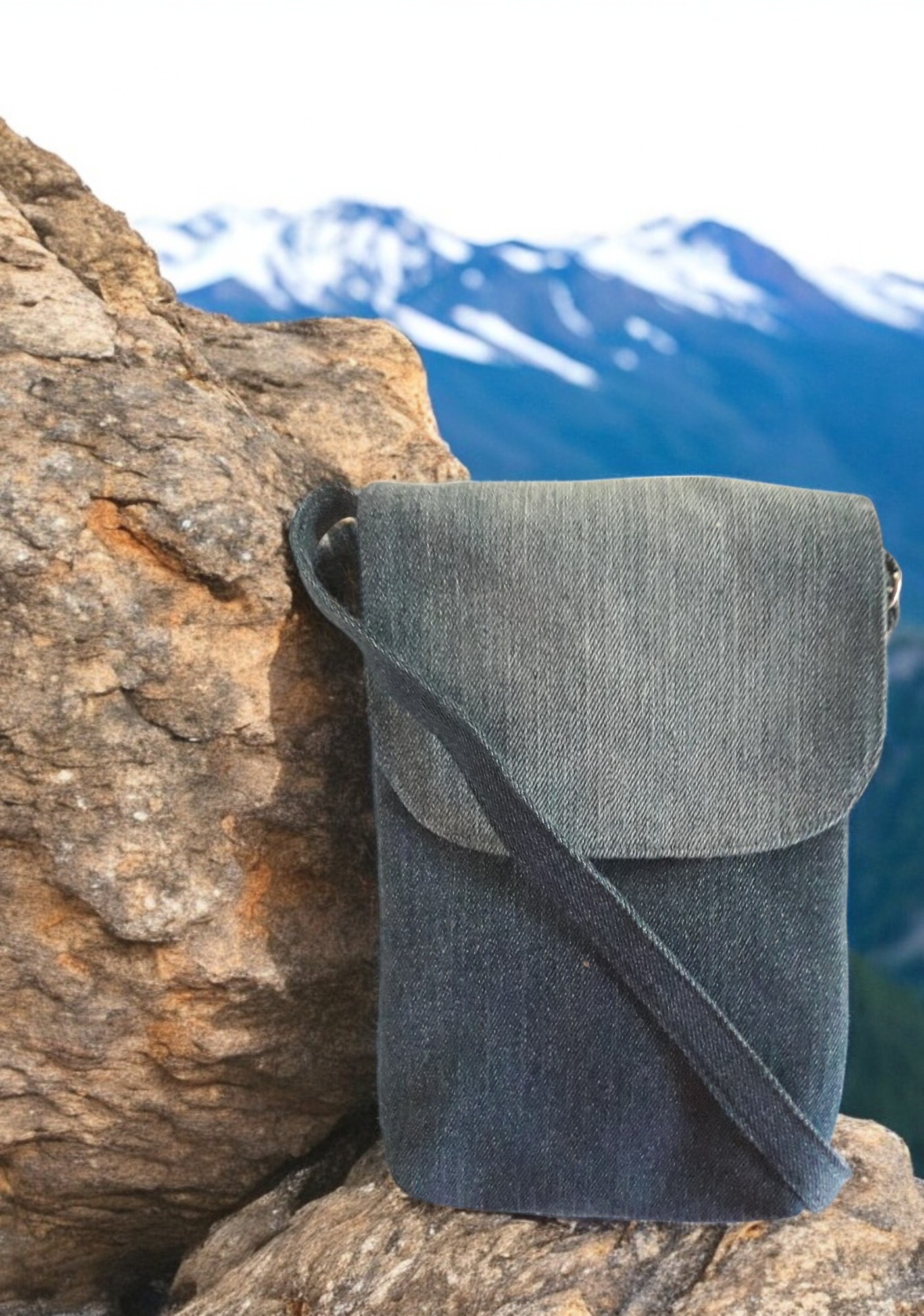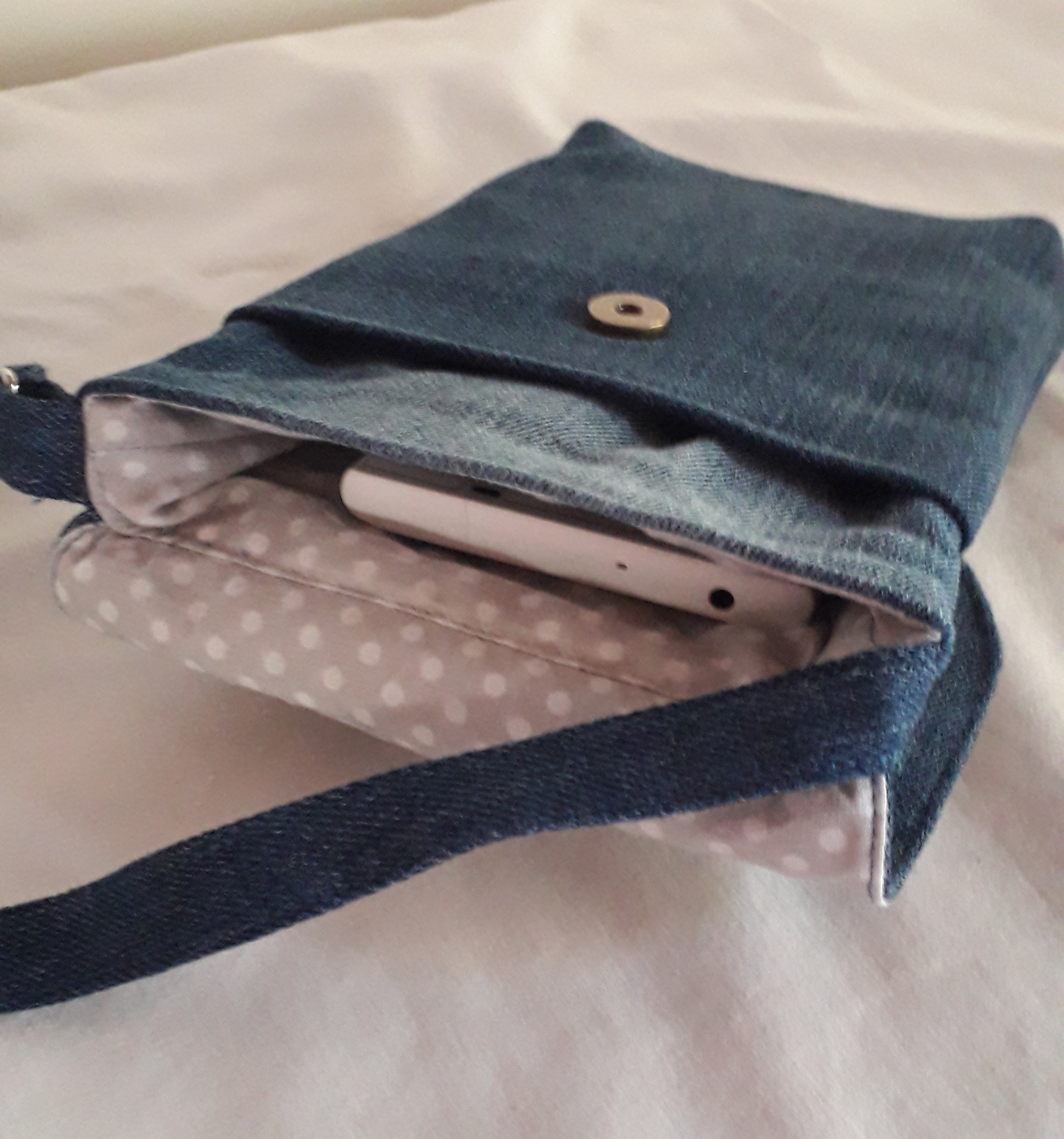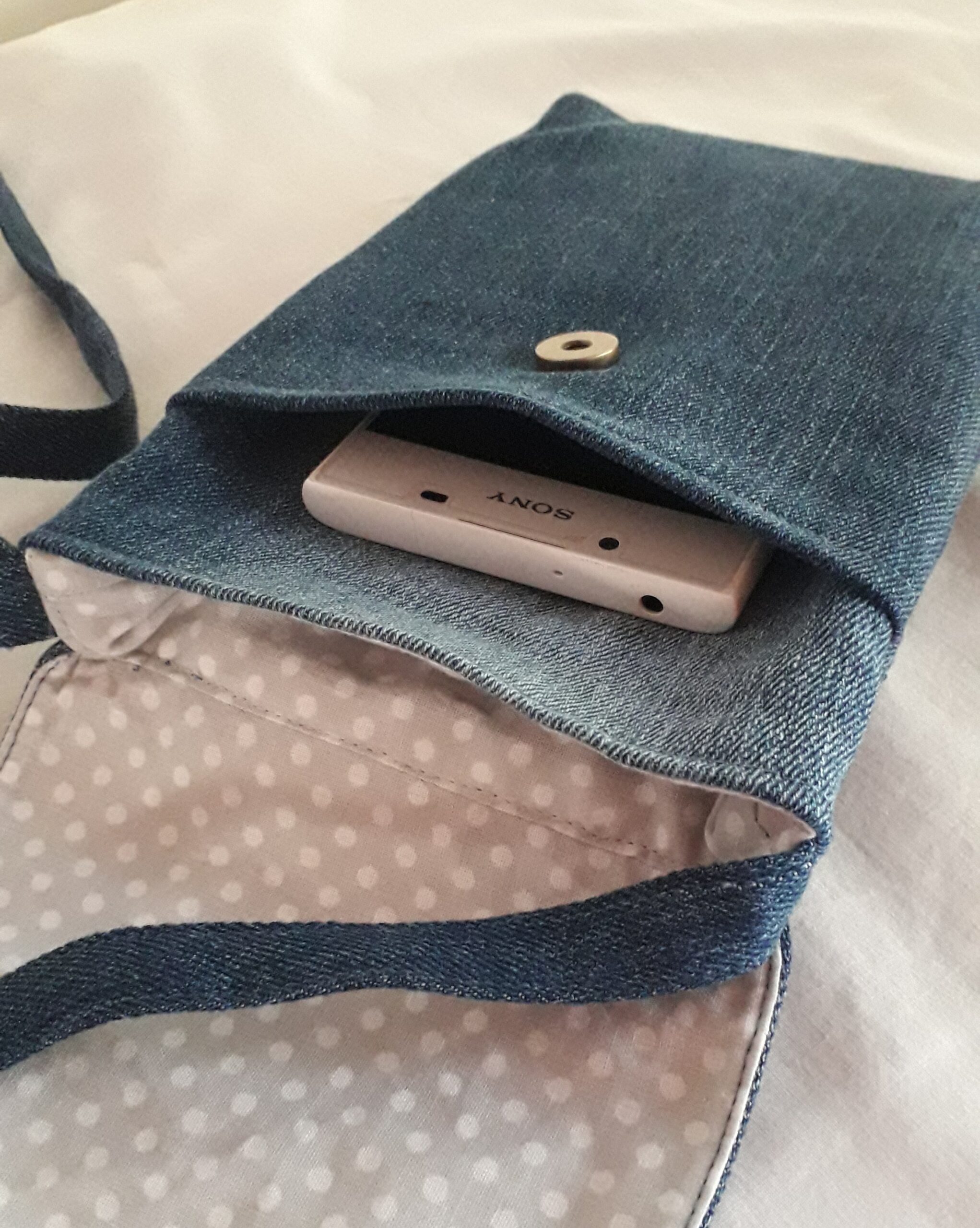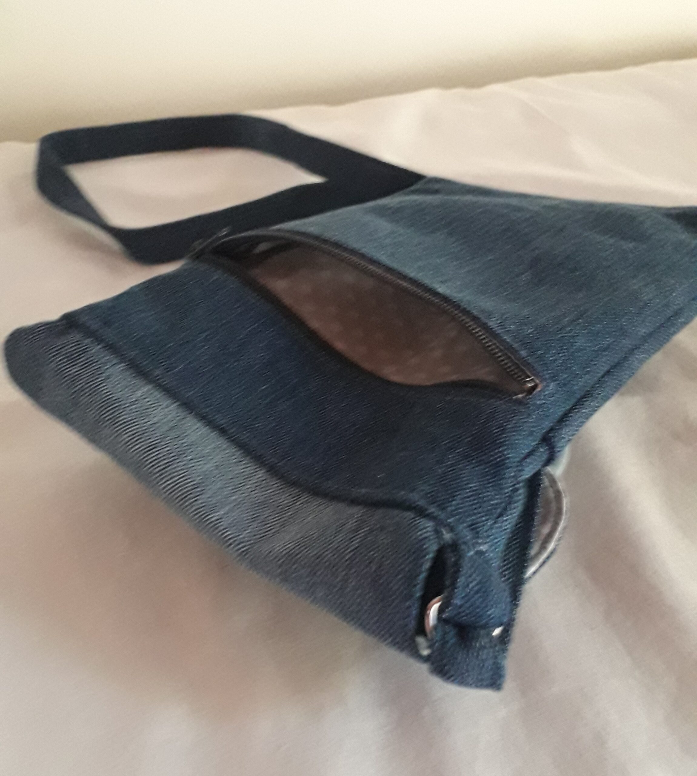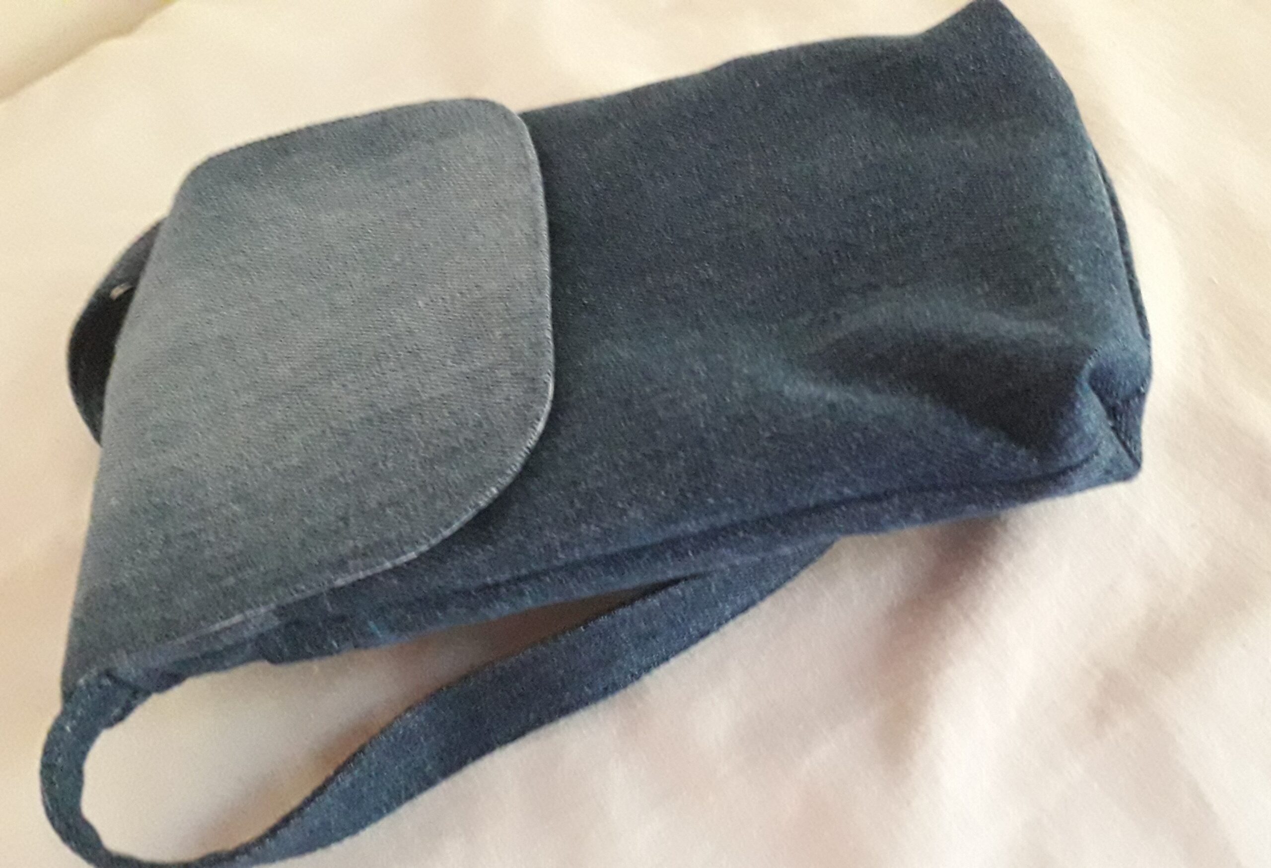 j’ai confectionné cette pochette entièrement en jeans elle se porte à l’aide d’une bride de 120cm réglable. Elle dispose d’une grande poche principal, d’une poche sur le devant assez grande pour y glisser un téléphone le tout protégé d’un rabat qui se ferme avec une pression magnétique et au dos une petite poché fermée avec une fermeture éclair, se qui vous permet de ranger une carte de crédit ou de l’argent en toute sécurité.